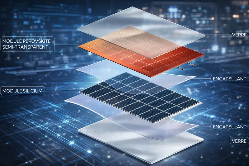 Les cellules photovoltaïques pérovskite-silicium reposent sur une architecture dite tandem, qui combine deux matériaux aux propriétés complémentaires.