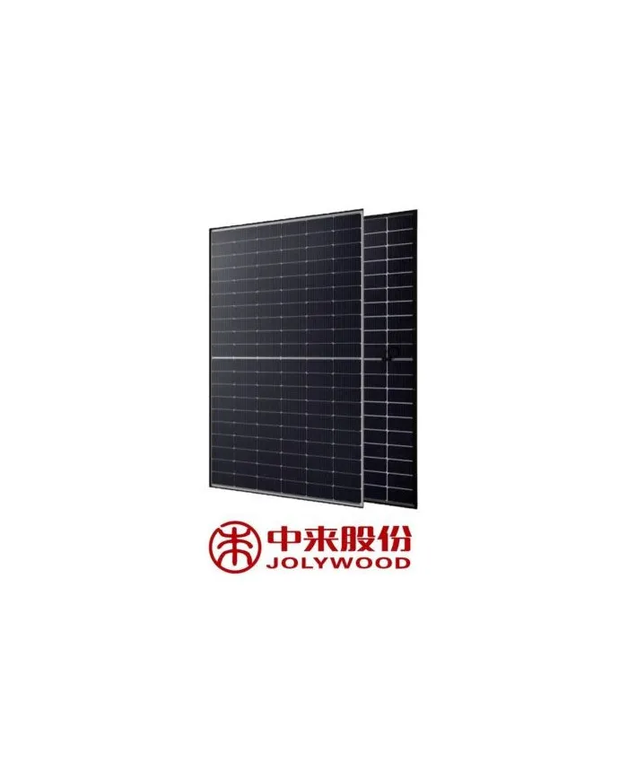 - 2 panneaux Jolywood Niwa Noir (JW‑HD108N‑R2) – 525 Wc chacun, technologie TOPCon N‑Type, 25 ans de garantie produit et 30 ans de garantie de performance.